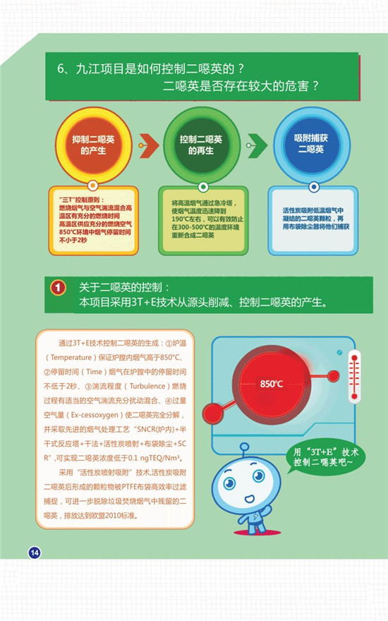 值得一提的是,九江垃圾焚燒發(fā)電項(xiàng)目采用3T+E技術(shù)從源頭削減、控制二噁英的產(chǎn)生。即保持垃圾焚燒溫度不低于850℃,煙氣在850C高溫區(qū)停留時(shí)間大于2秒,煙氣在爐膛內(nèi)充分?jǐn)_動(dòng)混合,使垃圾焚燒產(chǎn)生的二噁英得以分解消失;同時(shí),煙氣凈化系統(tǒng)中采用“活性炭噴射吸附”技術(shù);可有效吸附垃圾在爐膛內(nèi)焚燒時(shí)未完全分解的二噁英,排放標(biāo)準(zhǔn)完全達(dá)到或優(yōu)于0.1 ng TEQ/Nm3。通過(guò)上述環(huán)保措施處理后,二噁英的排放將達(dá)到歐盟2010標(biāo)準(zhǔn)(目前世界煙氣排放最高標(biāo)準(zhǔn))。