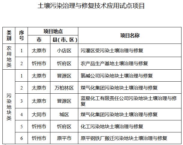 20.推進土壤污染治理與修復項目庫建設(shè),強化土壤污染防治項目儲備。進一步抓好土壤污染治理與修復技術(shù)應(yīng)用試點工作,2017年重點實施2個農(nóng)用地類和6個污染地塊類土壤污染治理與修復技術(shù)應(yīng)用試點項目(見附件),按照國家規(guī)定時限要求完成。以城市周邊污灌區(qū)、受污染耕地集中區(qū)域為重點,各市要啟動一批受污染耕地治理與修復項目,全省共啟動3000畝受污染耕地治理與修復。(省環(huán)保廳、省農(nóng)業(yè)廳、省國土資源廳牽頭,各市人民政府負責落實)