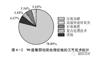 對(duì)已知處理工藝的90座處理設(shè)施的統(tǒng)計(jì)分析表明,以厭氧發(fā)酵為主的處理設(shè)施占78.89%,采用高溫快速好氧發(fā)酵的設(shè)施占6.67%,采用好氧堆肥的設(shè)施占4.44%,固液分離后液體厭氧、固體堆肥或制飼料(復(fù)合處理)的設(shè)施占5.56%,采用其他處理技術(shù)的占4.44%。厭氧發(fā)酵仍然是主流技術(shù)。