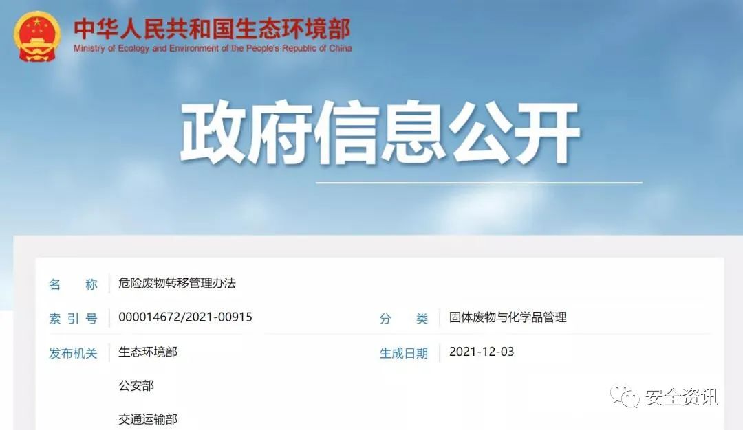 文章導(dǎo)讀《危險(xiǎn)廢物轉(zhuǎn)移管理辦法》自2022年1月1日起施行,同時(shí)廢止 《危險(xiǎn)廢物轉(zhuǎn)移聯(lián)單管理辦法》(原國家環(huán)境保護(hù)總局令第5號)。危險(xiǎn)廢物轉(zhuǎn)移管理辦法 《危險(xiǎn)廢物轉(zhuǎn)移管理辦法》已于2021年9月18日由生態(tài)環(huán)境部部務(wù)會議審議通過,并經(jīng)公安部和交通運(yùn)輸部同意,現(xiàn)予公布,自2022年1月1日起施行。 生...