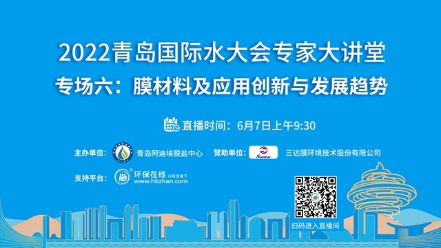 “2022青島國(guó)際水大會(huì)專家系列大講堂”接力第七場(chǎng)——凈水行業(yè)高端論壇將于6月14日上午登陸環(huán)保在線!緊跟海水淡化、工業(yè)節(jié)水與污水資源化、城鎮(zhèn)水務(wù)、水資源可持續(xù)、水環(huán)境治理、膜材料等議題的熱度,凈水行業(yè)的當(dāng)下與未來(lái),誠(chéng)邀業(yè)界同仁共探共論。(點(diǎn)擊圖片,即...