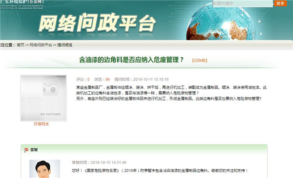 含油漆的邊角料是否應納入?某些金屬制品廠,金屬板件經(jīng)輥涂、噴涂、烘干后,再進行機加工,裝配成為金屬制品。輥涂、噴涂使用油性漆。此類機加工的邊角料含油性漆,是否與油漆桶一樣,需要納入?另外,有些外購已經(jīng)噴涂好的金屬板件回來進行機加工,形成金屬制品。此類邊角料是否也要納入危險廢物管理?答復:您好!《國家...