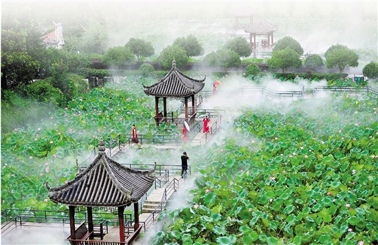 7月16日清晨6時(shí),陽(yáng)光灑向永康市舟山鎮(zhèn)端巖村端頭自然村的荷塘。攝影愛(ài)好者徐恭強(qiáng)來(lái)了:“今天5點(diǎn)起床,特意從城里趕過(guò)來(lái)拍照?!笨粗§F慢慢升起,他舉起相機(jī),定格美好瞬間?!白疃鄷r(shí),同時(shí)有180個(gè)攝影師來(lái)拍荷塘!”端巖村黨支部書(shū)記俞海從荷塘中央的連廊走來(lái),滿(mǎn)臉自豪。端頭村是個(gè)僅有146戶(hù)、398人的小...