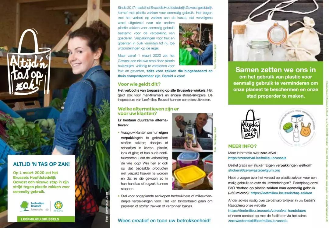 "ALWAYS A BAG IN POCKET!"(“請(qǐng)自備袋子!”)布魯塞爾環(huán)境部發(fā)出呼吁。布魯塞爾“新塑料袋禁令”的宣傳冊(cè) 據(jù)布魯塞爾時(shí)報(bào)報(bào)道,在比利時(shí)的布魯塞爾首都大區(qū),從 2020 年 3 月 1 日起,商店將全面禁止使用一次性塑料袋(厚度低于 50 微米的塑料袋,微米為...