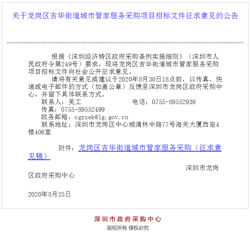 文章導(dǎo)讀2019年,深圳市政府計(jì)劃引進(jìn)“城市管家”概念,在此背景下,“物管城市”模式開(kāi)始浮出水面,基本思路為:統(tǒng)籌整合環(huán)境衛(wèi)生、綠化管養(yǎng)、市容管控、數(shù)字化城管等城市管理服務(wù),委托專(zhuān)業(yè)的物管企業(yè)開(kāi)展市政一體化運(yùn)營(yíng),構(gòu)建“管理+服務(wù)+運(yùn)營(yíng)”的城市治理新模式。8月25日,深圳市政府采購(gòu)中心發(fā)布“深圳市龍崗...