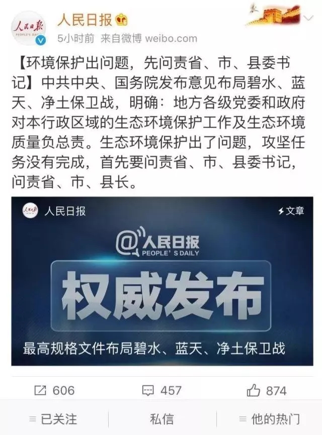 昨日,人民日?qǐng)?bào)發(fā)布《這件事,習(xí)近平視為“根本大計(jì)”》、《環(huán)境保護(hù)腰桿硬起來(lái)》、《中央環(huán)保督察嚴(yán)禁“表面整改”》等數(shù)篇文章。而近日,中央紀(jì)委則首次集中通報(bào)了生態(tài)責(zé)任追究的典型問題。在第47個(gè)世界環(huán)境日,以如此猛烈的方式表達(dá)對(duì)環(huán)境的關(guān)注,無(wú)疑在釋放嚴(yán)肅查處破壞環(huán)境違紀(jì)違法行為的強(qiáng)烈信號(hào),表明了中央對(duì)治理...