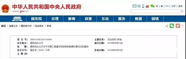 2018年5月18日,國(guó)務(wù)院辦公廳發(fā)布《關(guān)于開展工程建設(shè)項(xiàng)目審批制度改革試點(diǎn)的通知》,通知要求地方政府按照黨中央、國(guó)務(wù)院關(guān)于深化“放管服”改革和優(yōu)化營(yíng)商環(huán)境的部署要求,以推進(jìn)政府治理體系和治理能力現(xiàn)代化為目標(biāo),對(duì)工程建設(shè)項(xiàng)目審批制度進(jìn)行全流程、全覆蓋改革,努力構(gòu)建科學(xué)、便捷、高效的工程建設(shè)項(xiàng)目審批和...