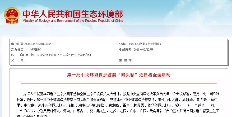 近日,第一批中央環(huán)境保護(hù)督察“回頭看”將全面啟動(dòng),對(duì)河北、河南,內(nèi)蒙古、寧夏,黑龍江,江蘇、江西,廣東、廣西,云南等?。ㄗ灾螀^(qū))開展“回頭看”督察進(jìn)駐工作,進(jìn)駐時(shí)間約為1個(gè)月。來(lái)源:生態(tài)環(huán)境部近日,第一批中央環(huán)境保護(hù)督察“回頭看”將全面啟動(dòng),對(duì)河北、河南,內(nèi)蒙古、寧夏,黑龍江,江蘇、江西,廣東、廣西...