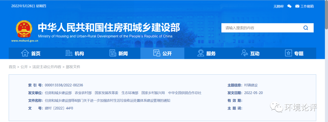 為深入貫徹黨中央、國(guó)務(wù)院關(guān)于實(shí)施鄉(xiāng)村建設(shè)行動(dòng)的決策部署,落實(shí)《農(nóng)村人居環(huán)境整治提升五年行動(dòng)方案(2021—2025年)》明確的目標(biāo)任務(wù),統(tǒng)籌縣鄉(xiāng)村三級(jí)生活垃圾收運(yùn)處置設(shè)施建設(shè)和服務(wù),進(jìn)一步擴(kuò)大農(nóng)村生活垃圾收運(yùn)處置體系覆蓋范圍,提升無(wú)害化處理水平,健全長(zhǎng)效管護(hù)機(jī)制,近日,住房和城鄉(xiāng)建設(shè)部等6部門印發(fā)《...