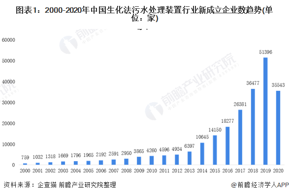 中國(guó)生化污水法裝置發(fā)展現(xiàn)狀 根據(jù)企查貓的數(shù)據(jù)顯示,2000-2020國(guó)生化法污水處理裝置行業(yè)新成立企業(yè)數(shù)呈現(xiàn)逐年上升趨勢(shì)。自2014年起,中國(guó)生化法污水處理裝置行業(yè)新成立企業(yè)數(shù)呈現(xiàn)爆發(fā)狀態(tài),在2019到了近年了峰值51396家,較2013年的6397家翻了將近5倍。截止到2020年12月初,中國(guó)生化...