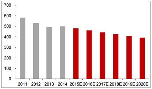 環(huán)保部發(fā)布《關(guān)于推進(jìn)環(huán)境污染第三方治理的實(shí)施意見》,引導(dǎo)工業(yè)企業(yè)進(jìn)入工業(yè)園區(qū),并重點(diǎn)培養(yǎng)第三方處理的新模式。為工業(yè)企業(yè)提供更專業(yè)的服務(wù)。根據(jù)環(huán)保部所提供的數(shù)據(jù),2011年平均處理費(fèi)用為1.26元/噸,2016年平均工業(yè)污水處理費(fèi)用上升至1.6元,年均復(fù)合增長(zhǎng)率為4.89%。由此我們估算2017年平均...