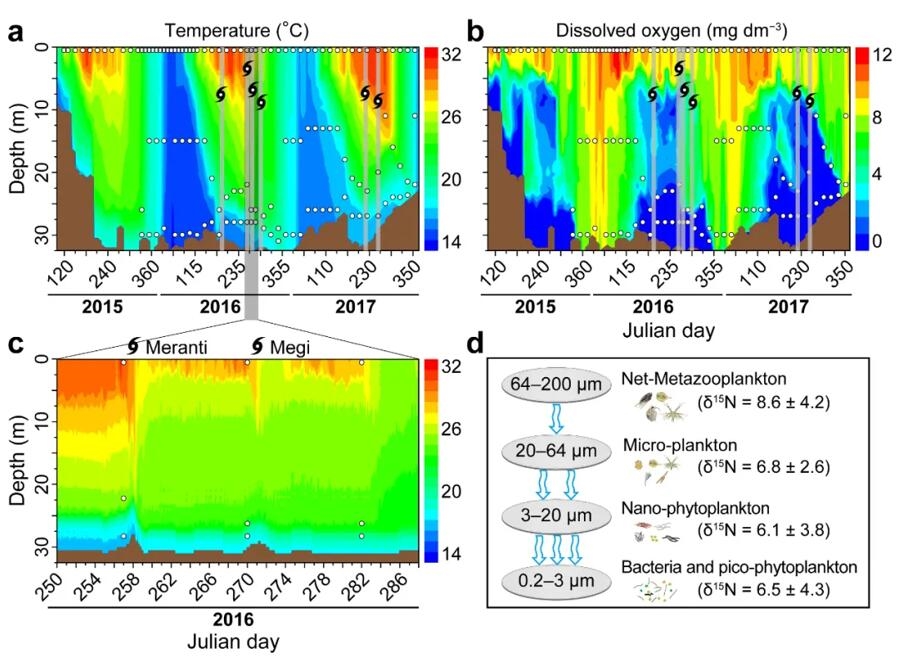 在當(dāng)前氣候變化背景下,預(yù)計(jì)全球熱帶和亞熱帶地區(qū)臺(tái)風(fēng)事件(也稱為熱帶氣旋或颶風(fēng))的強(qiáng)度將持續(xù)增加,由此帶來的強(qiáng)風(fēng)和暴雨災(zāi)害事件將造成當(dāng)?shù)亟?jīng)濟(jì)和生態(tài)系統(tǒng)功能的損失。深水型水庫和湖泊具有重要的科學(xué)和社會(huì)服務(wù)價(jià)值,這些水體的一個(gè)典型特征是水體上下分層,例如表層水體(湖上層)藻類較多和底層水體(湖下層)營養(yǎng)豐...
