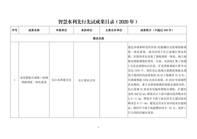 為及時(shí)總結(jié)先行先試經(jīng)驗(yàn),提煉形成可復(fù)制可推廣成果,加快推進(jìn)智慧水利,根據(jù)《水利部關(guān)于開(kāi)展智慧水利先行先試工作的通知》(水信息〔2020〕46號(hào))要求,水利部網(wǎng)信辦近期組織完成智慧水利先行先試中期檢查評(píng)估工作,同步開(kāi)展了智慧水利先行先試成果申報(bào)與評(píng)選。11家先行先試單位積極響應(yīng),共申報(bào)先行先試成果49...